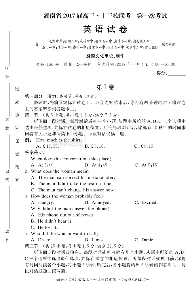 下一篇:【語文】炎德英才大聯考2017長郡中學高三7次月考(十三校聯考一)