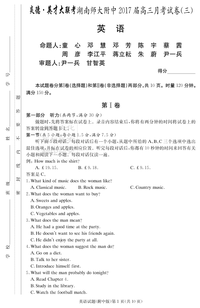 上一篇:【物理】炎德英才大聯考2017師大附中高三3次月考