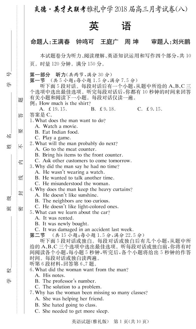 資源類別: | 名校月考 | |