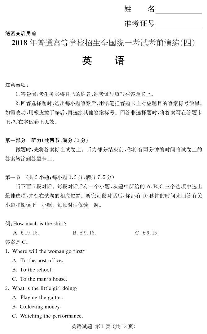 下一篇:【語文】2018年普通高等學校招生全國統一考試考前演練(四)
