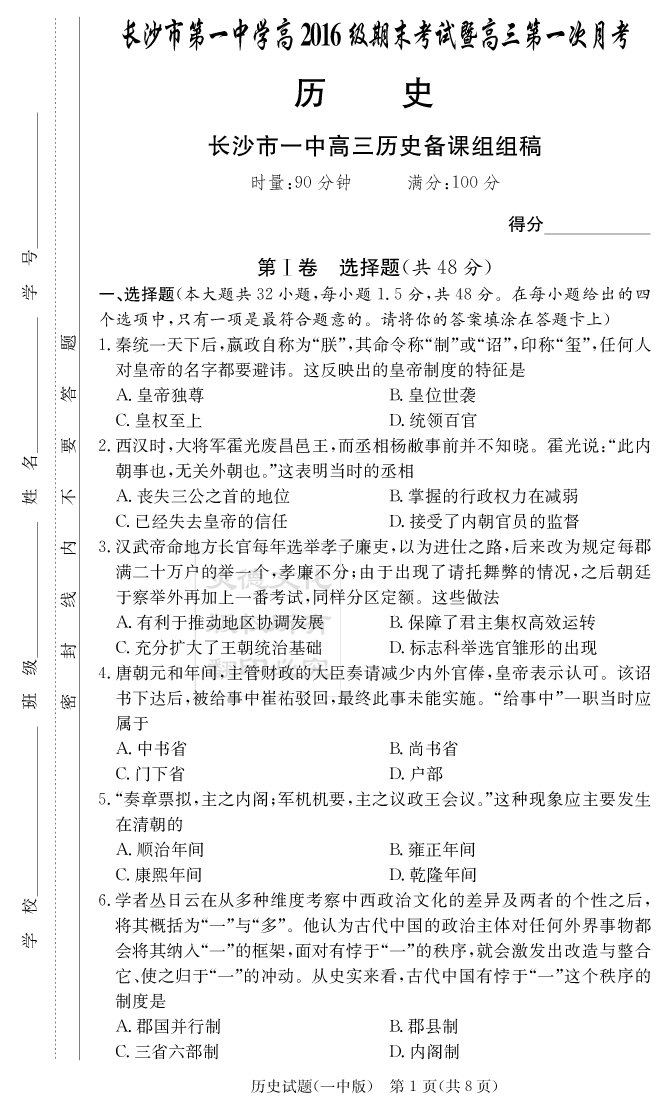 2025長郡中學新高考考前小題沖刺訓練·歷史