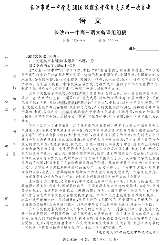 上一篇:【英語】炎德英才大聯考2019長沙一中高三1次月考