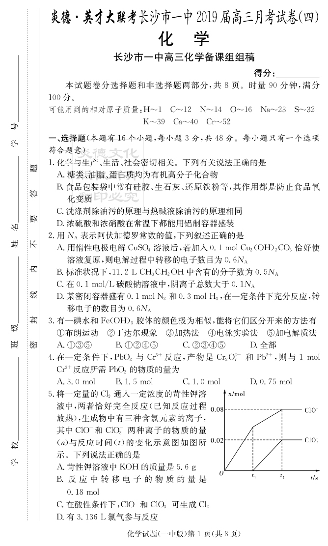 2025長郡中學新高考考前小題沖刺訓練·化學