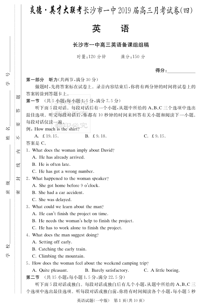 2025長郡中學新高考考前小題沖刺訓練·英語