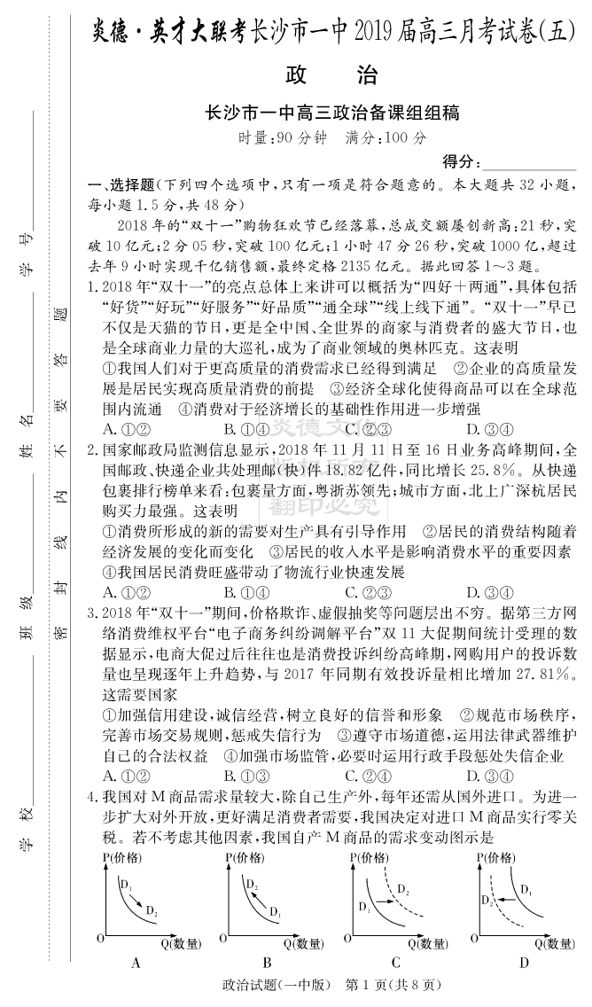 2025長郡中學新高考考前小題沖刺訓練·政治