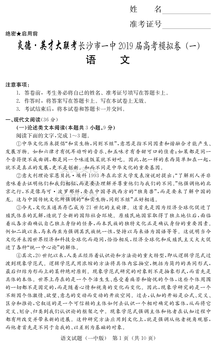 上一篇:【英語】炎德英才大聯考2019長沙一中高三10次月考(模擬一)