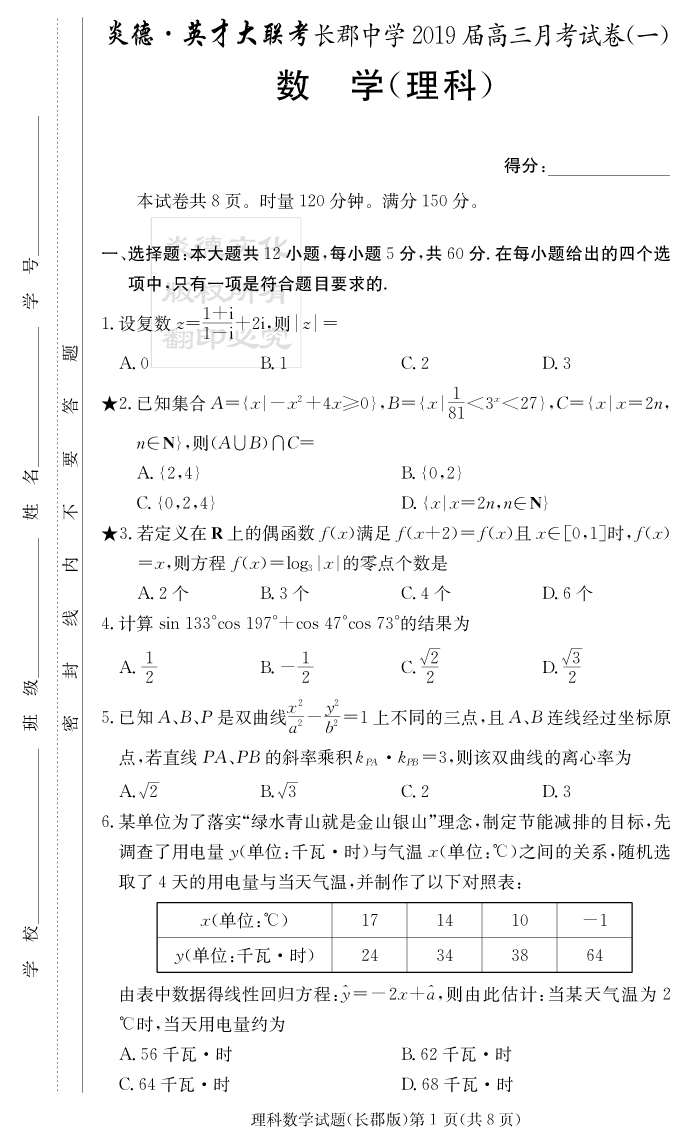 上一篇:【化學】炎德英才大聯考2019長郡中學高三1次月考
