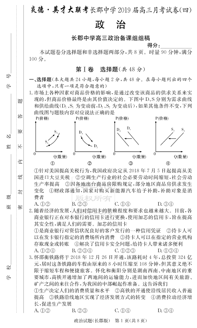 2025長郡中學新高考考前小題沖刺訓練·政治