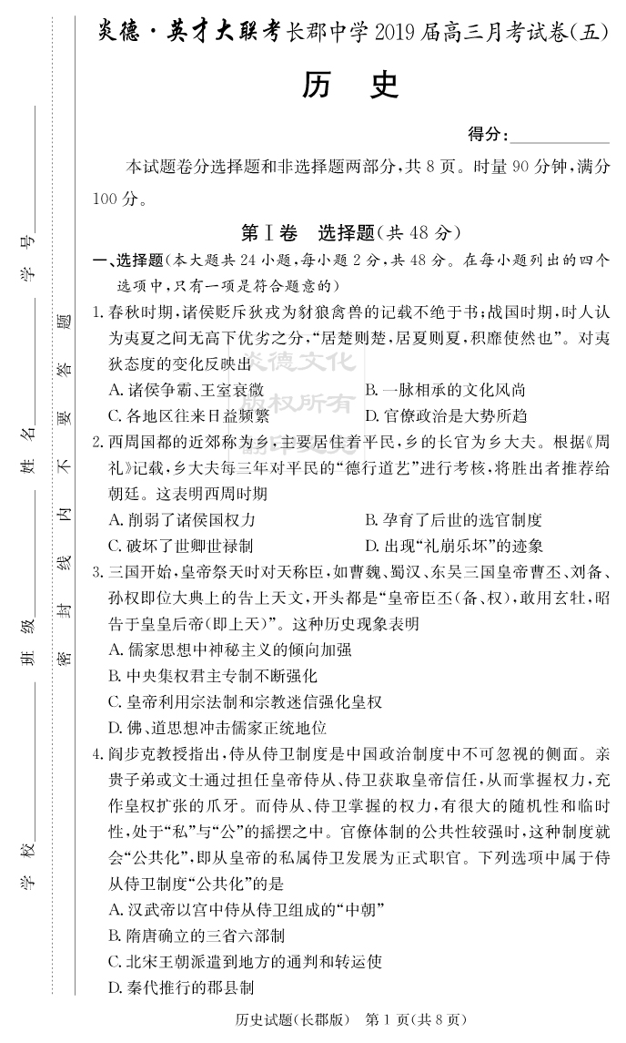 2025長郡中學新高考考前小題沖刺訓練·歷史