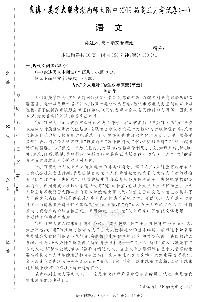 2025湖南師大附中新高考考前小題訓練·語文