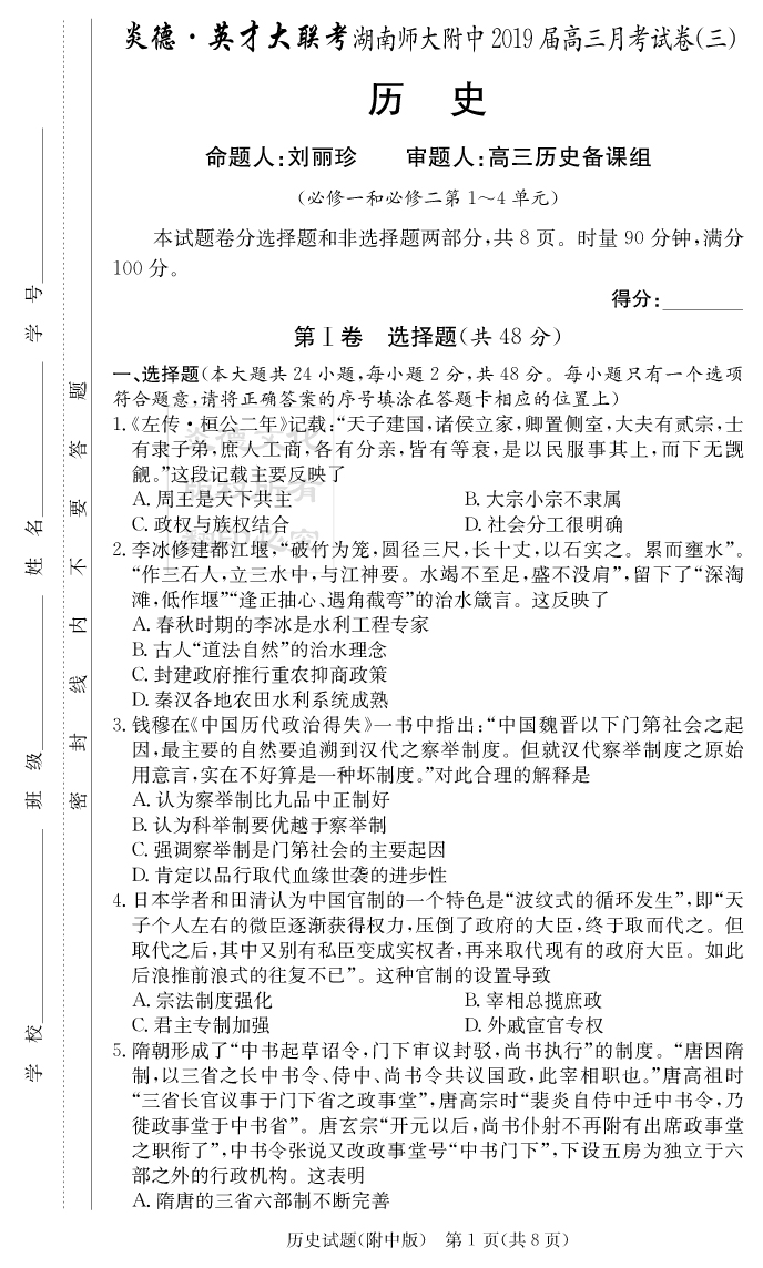 2025長郡中學新高考考前小題沖刺訓練·歷史
