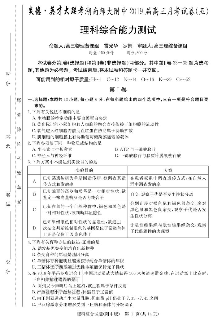 上一篇:【理數】炎德英才大聯考2019師大附中高三5次月考