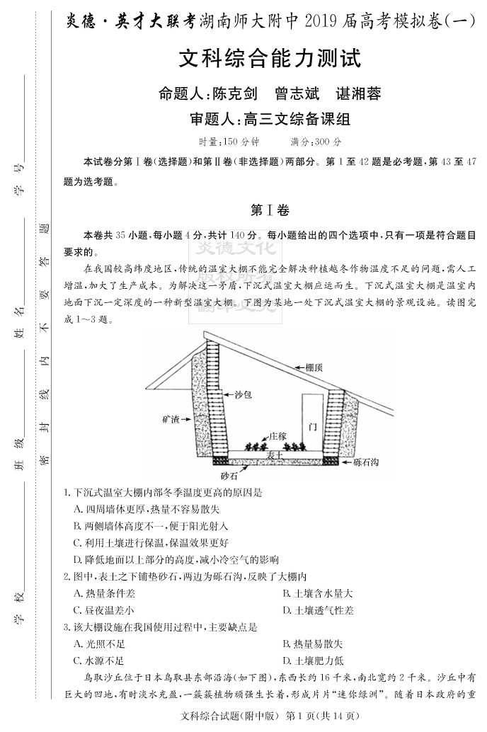 2025長郡中學新高考考前小題沖刺訓練·地理