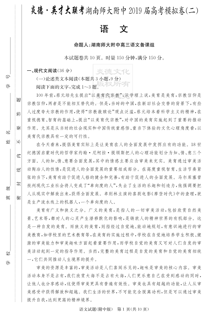 2025湖南師大附中新高考考前小題訓練·語文