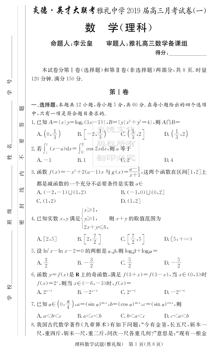 下一篇:【歷史】炎德英才大聯考2019雅禮中學高三1次月考