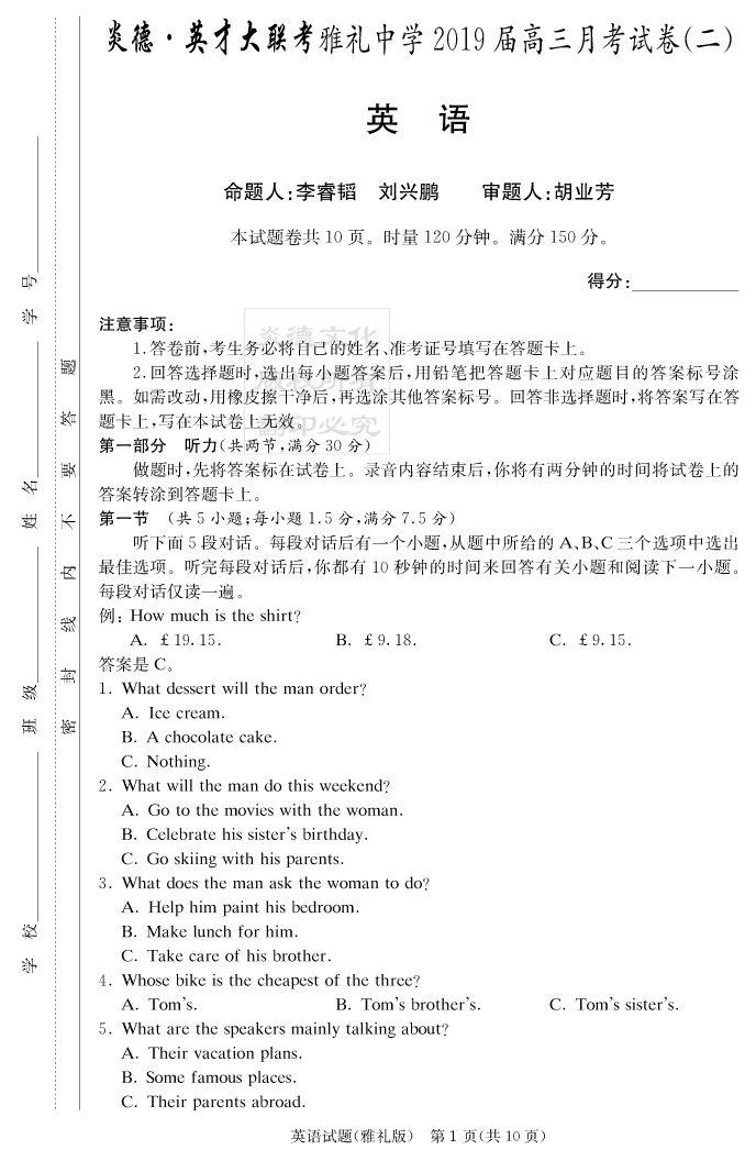 下一篇:【語文】炎德英才大聯考2019雅禮中學高三2次月考