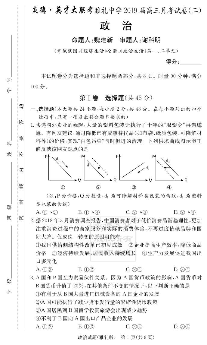 2025長郡中學新高考考前小題沖刺訓練·政治