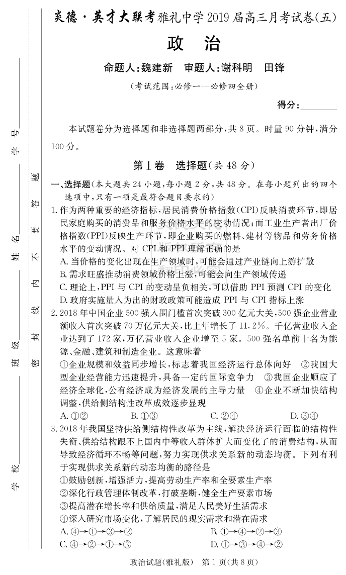 2025長郡中學新高考考前小題沖刺訓練·政治