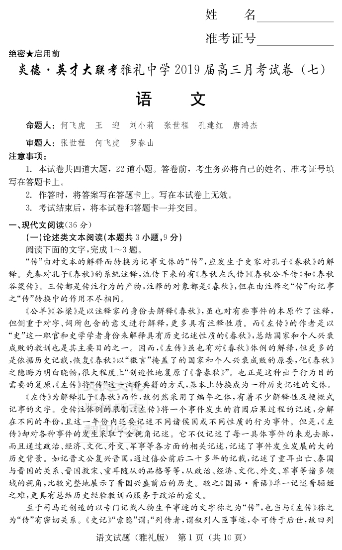 上一篇:【英語】炎德英才大聯考2019雅禮中學高三7次月考