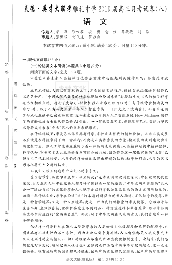 2025長郡中學新高考考前小題沖刺訓練·語文