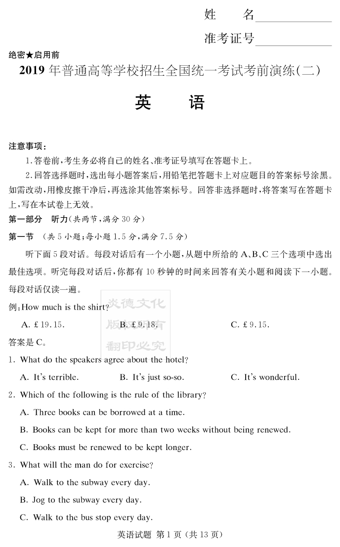 上一篇:【文綜】2019年普通高等學校招生全國統一考試考前演練(二)