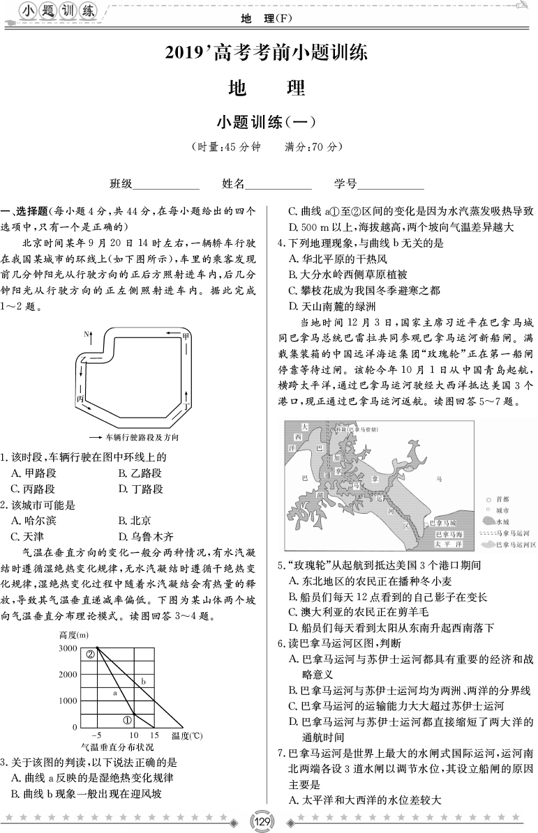 2025湖南師大附中新高考考前小題訓練·地理