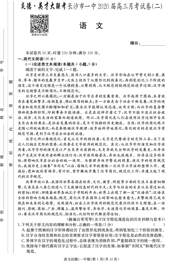 2025長郡中學新高考考前小題沖刺訓練·語文