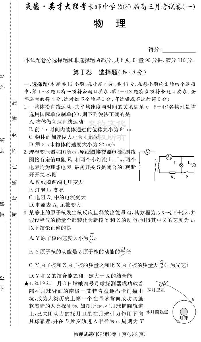 上一篇:【文數】炎德英才大聯考2020屆長郡中學高三1次月考