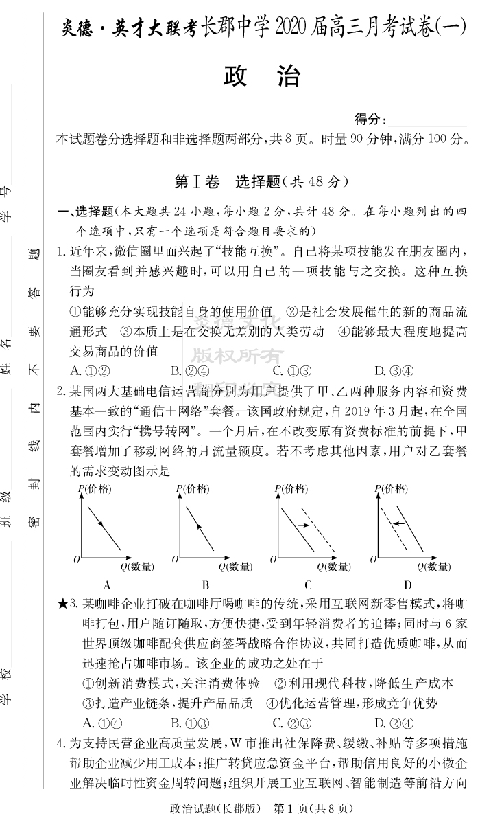 2025長郡中學新高考考前小題沖刺訓練·政治