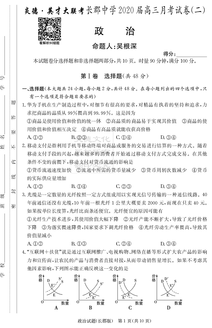 2025長郡中學新高考考前小題沖刺訓練·政治