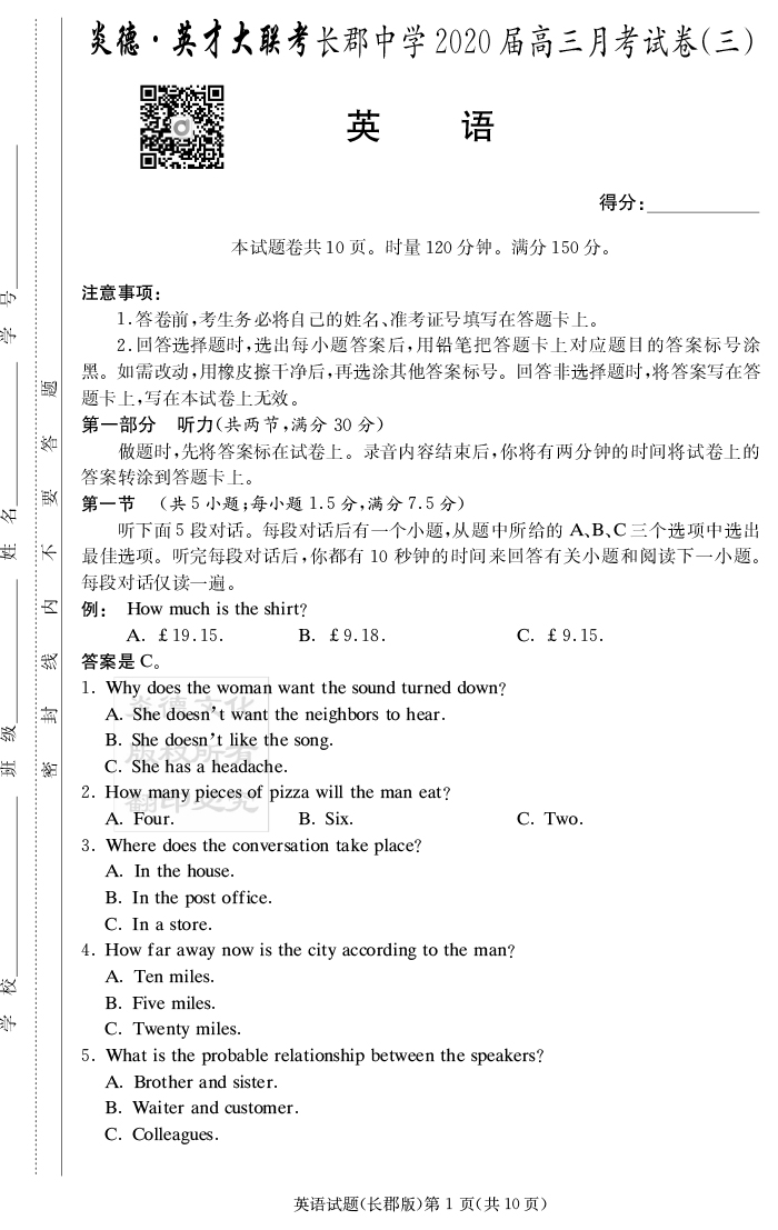 2025長郡中學新高考考前小題沖刺訓練·英語