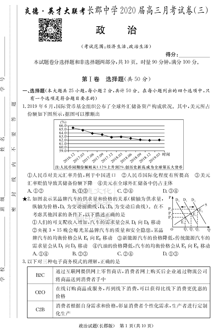 2025長郡中學新高考考前小題沖刺訓練·政治
