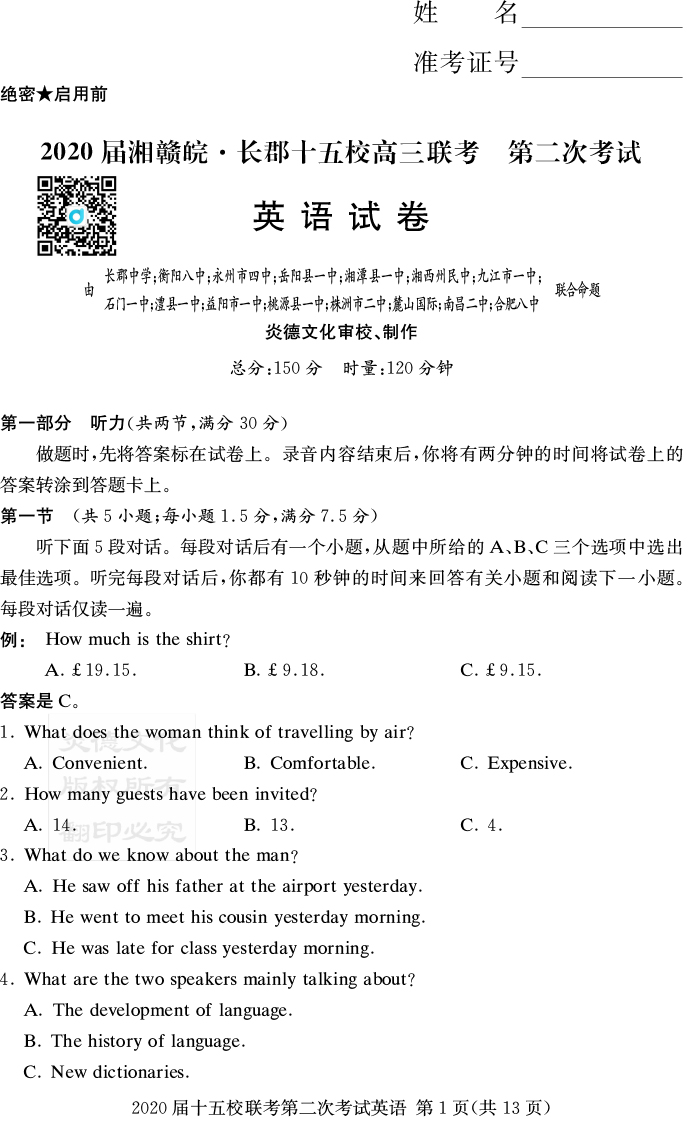 下一篇:【語文】炎德英才大聯考2020屆長郡中學高三8次月考(十五校聯考一)
