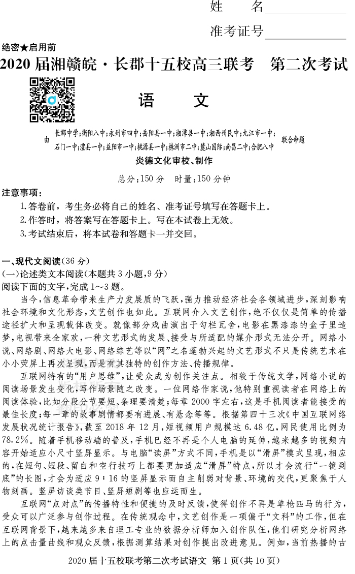 上一篇:【英語(yǔ)】炎德英才大聯(lián)考2020屆長(zhǎng)郡中學(xué)高三8次月考(十五校聯(lián)考一)