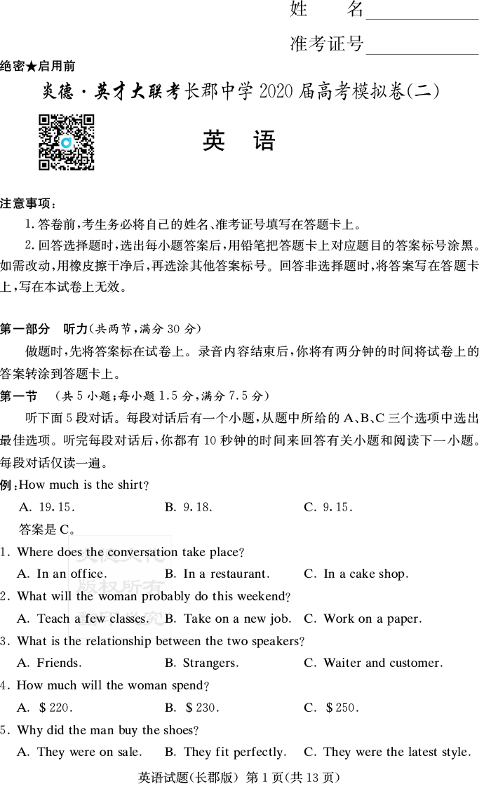 下一篇:【語文】炎德英才大聯考2020屆長郡中學高三10次月考(模擬二)