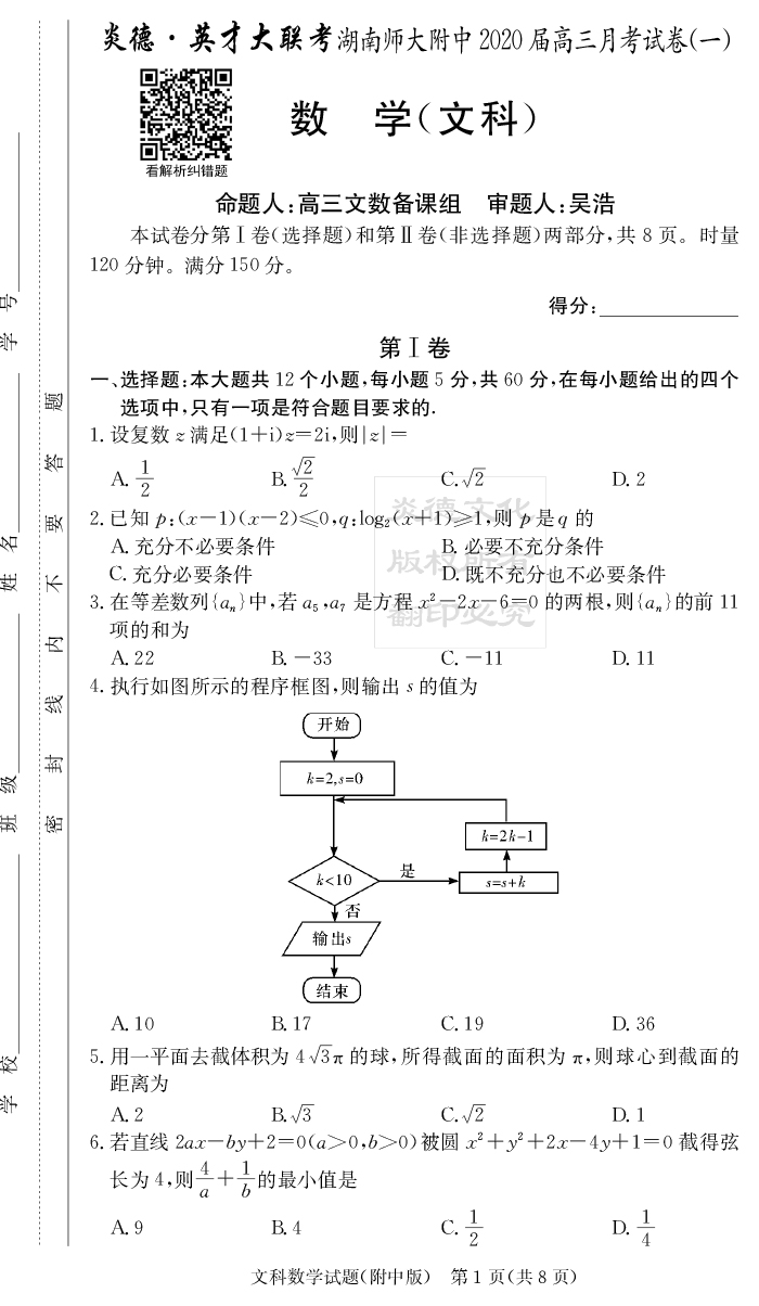 上一篇:【生物】炎德英才大聯考2020屆師大附中高三1次月考