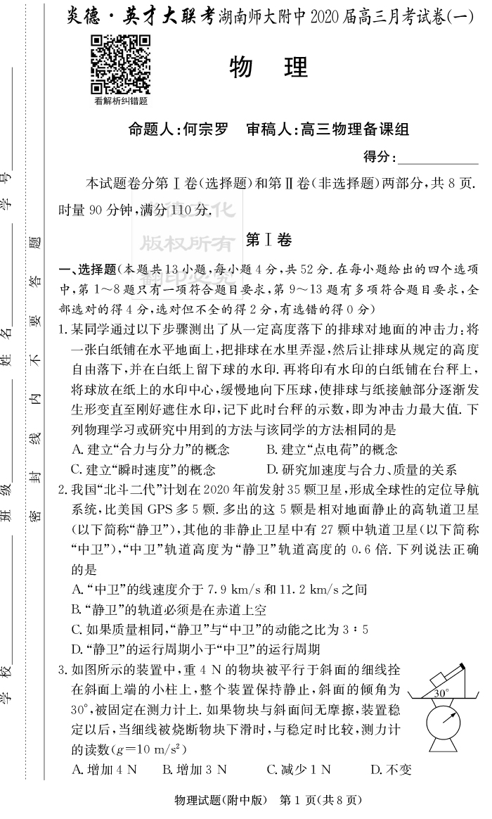 下一篇:【英語】炎德英才大聯考2020屆師大附中高三1次月考