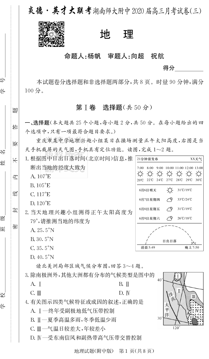 2025長郡中學新高考考前小題沖刺訓練·地理