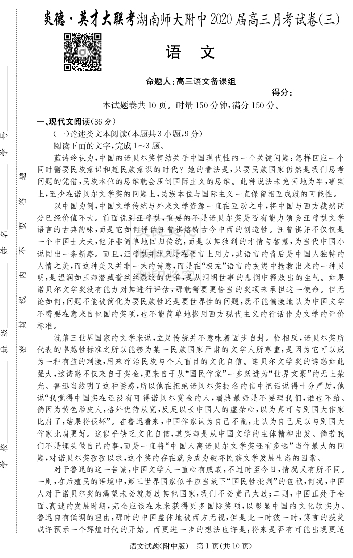 2025長郡中學新高考考前小題沖刺訓練·語文