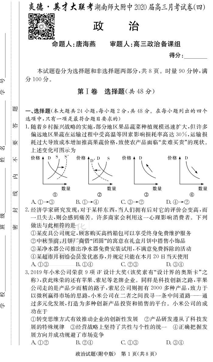 2025長郡中學新高考考前小題沖刺訓練·政治