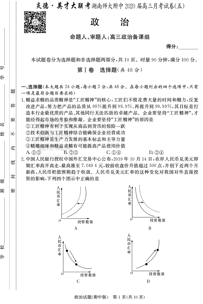 2025長郡中學新高考考前小題沖刺訓練·政治