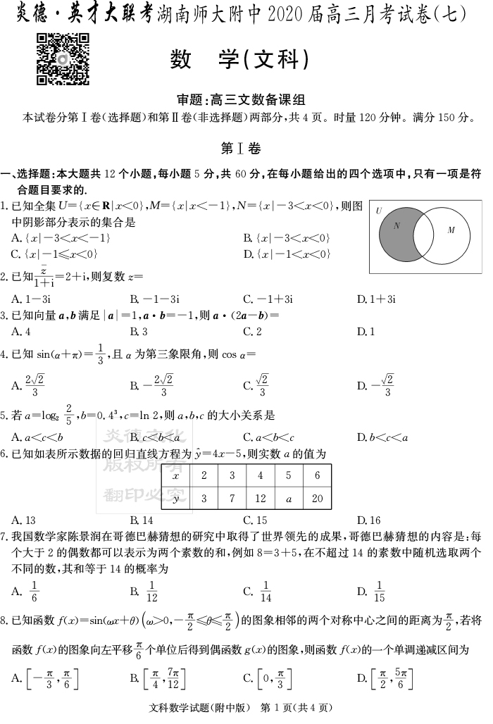 2025湖南師大附中新高考考前小題訓練·數(shù)學