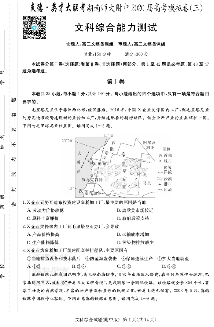 2025湖南師大附中新高考考前小題訓練·地理