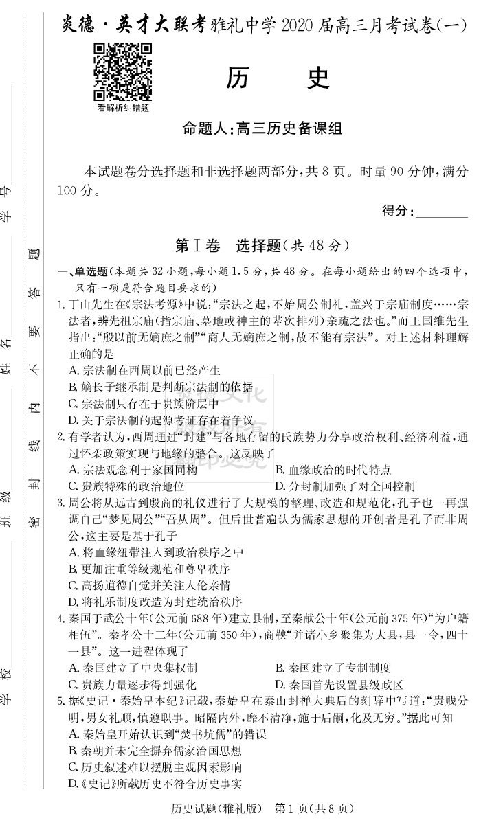 2025年長郡中學備考寶典(高考考前寶典)·歷史傾向