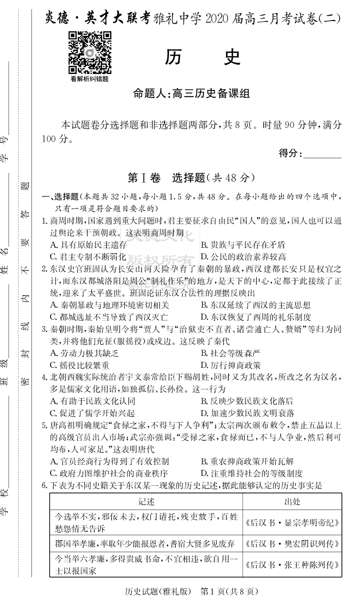 2025長郡中學新高考考前小題沖刺訓練·歷史