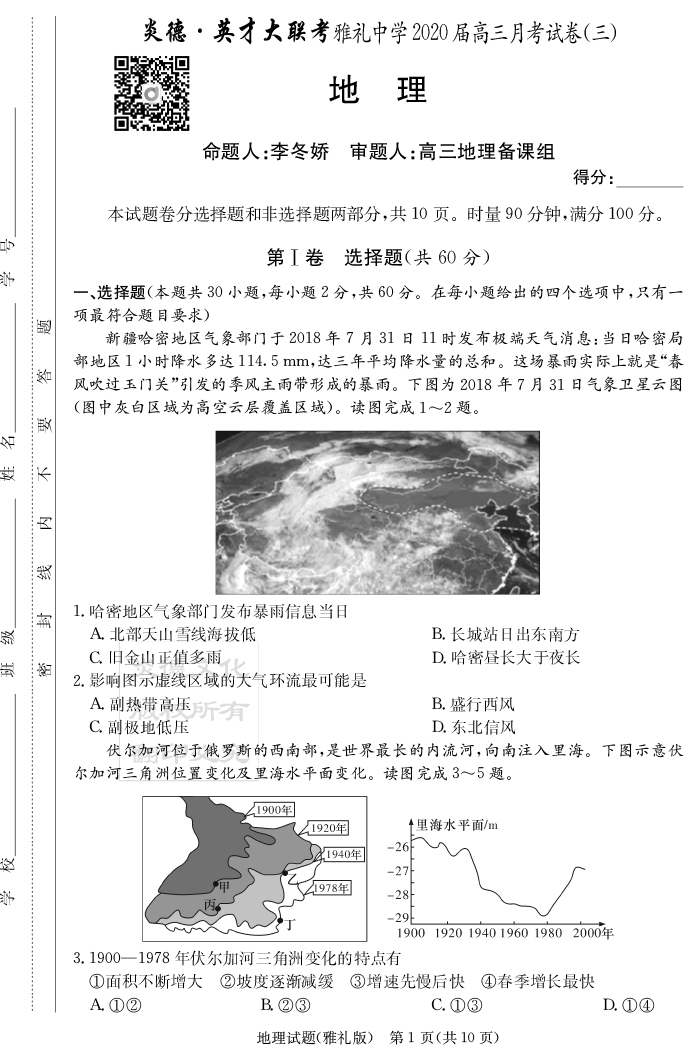 2025長郡中學新高考考前小題沖刺訓練·地理