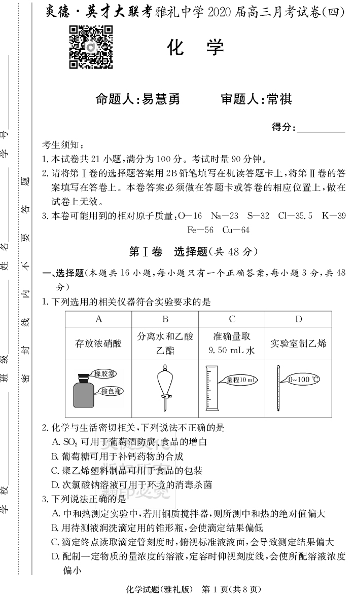 下一篇:【理數】炎德英才大聯考2020屆雅禮中學高三4次月考