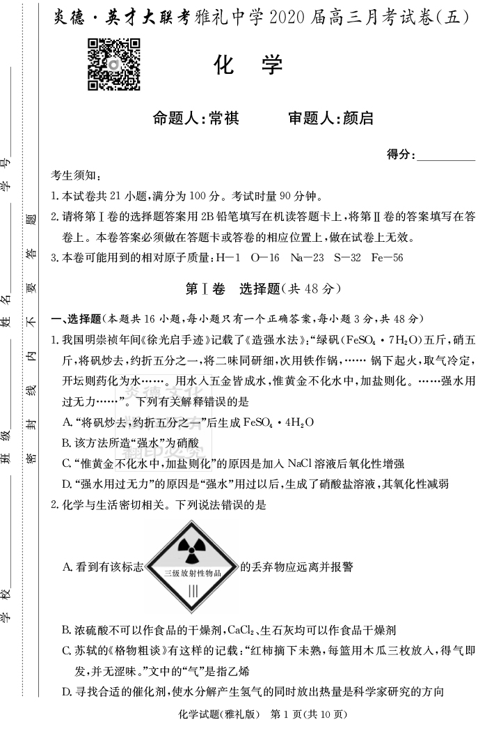 下一篇:【理數】炎德英才大聯考2020屆雅禮中學高三5次月考