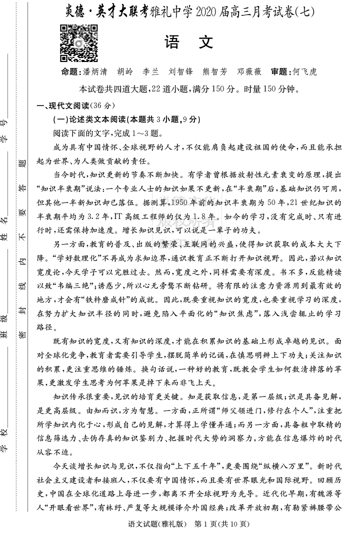 上一篇:【英語】炎德英才大聯考2020屆雅禮中學高三7次月考