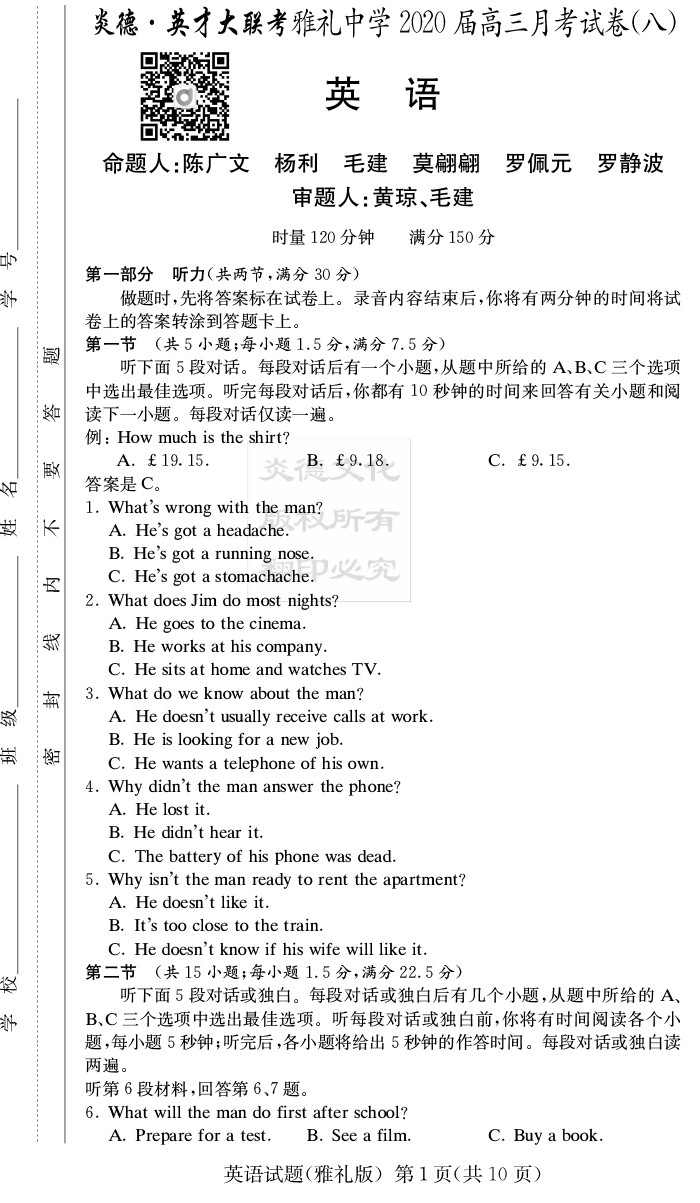 上一篇:【文綜】炎德英才大聯考2020屆雅禮中學高三8次月考